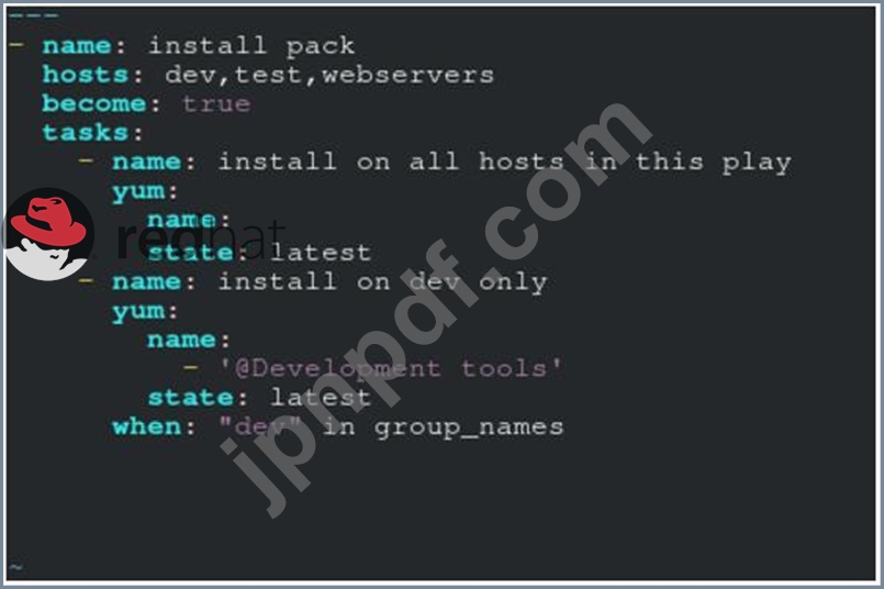 /home/sandy/ansible に packages.yml というファイルを作成して、次のホスト用のいくつかのパッケージをインストールします。dev、prod、および Web サーバーでは、パッケージ httpd、mod_ssl、および mariadb をインストールします。開発環境では、開発ツール パッケージのみをインストールします。また、開発ホスト上ですべてのパッケージを最新のものに更新します。