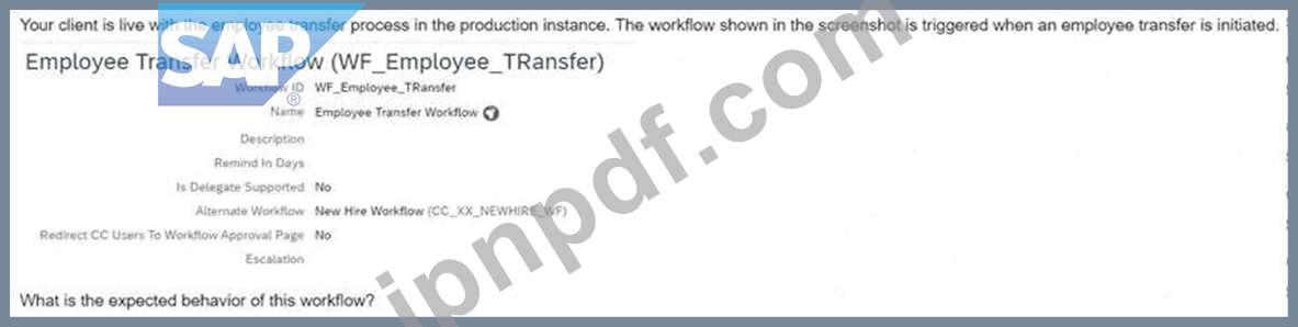 お客様は本番インスタンスで従業員の異動プロセスを稼働させています。スクリーンショットに示されているワークフローは、従業員の異動が開始されるとトリガーされます。