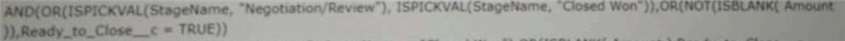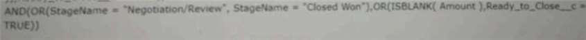 UniversalContainers は、ネゴシエーション/レビューまたは受注段階で、次の商談フィールドが各レコードに存在することを確認したいと考えています。