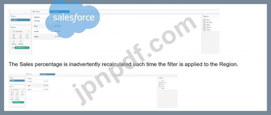 クライアントは、全地域と比較した特定の地域の総売上の割合を計算します。