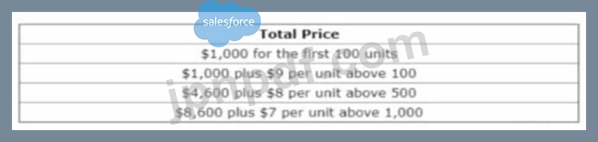 サブスクリプション製品を見積もる場合、Universal Containersのユーザーは、毎月または毎年の支払い頻度を選択する必要があります。頻度が月次の場合、Universal Containersは、サブスクリプションサービスの価格に10%の自動引き上げを適用したいと考えています。管理者は、価格ルールを使用してこの要件を実装することを決定し、計算結果を見積もり行の[定価]フィールドに挿入したいと考えています。管理者は、この上昇価格ルールの価格条件でどの数式式を設定する必要がありますか?