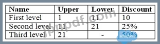 Universal Containersには、次の割引階層を持つ製品Aのスラブ割引スケジュールがあります。