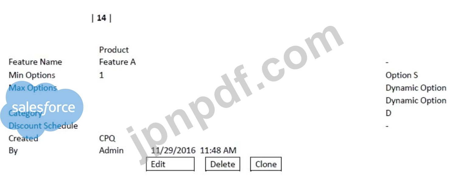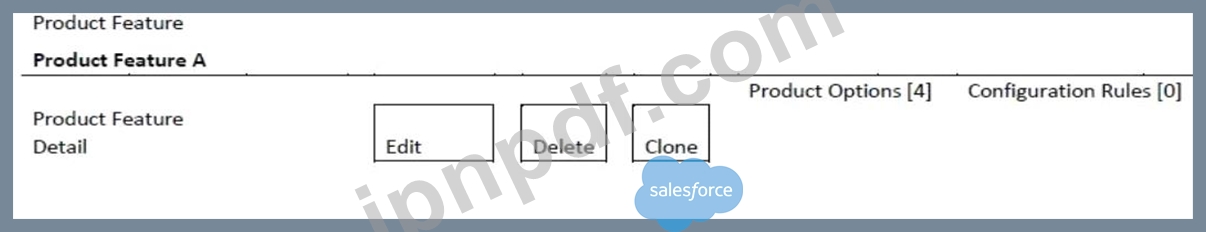 バンドル A には、製品機能 A 内に製品 A、B、C、D の 4 つの製品オプションがあります。