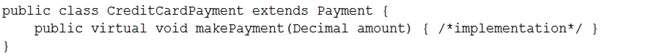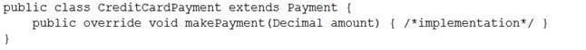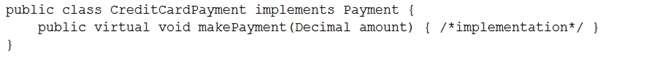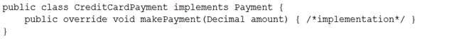 開発者は、既存の Paymentclass の実装を提供する CreditCardPaymentclass を作成する必要があります。