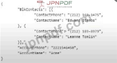 What JSON from the DRGetAccountDetails action would display all six values correctly in the OmniScript structure shown? BlkContacts is a Repeat Block.