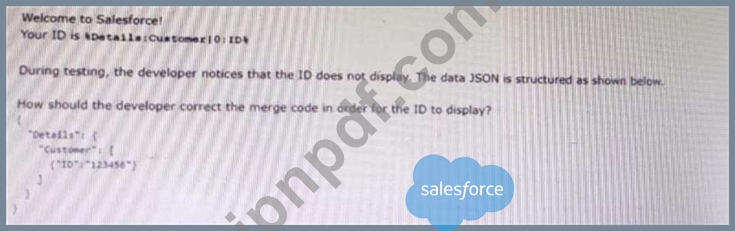 開発者は、顧客にトレイル組織をプロビジョニングするOmniScriptを作成しています。Omniscriptの次のテキストブロックは、マージコードを使用して、新しい証跡組織のIDを表示します。