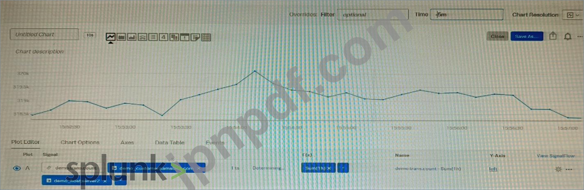 メトリック デモ トランザクション カウントが 10 秒のネイティブ解像度で送信されている場合、以下のグラフに表示されるデータ マーカーの正確な説明は次のどれですか。