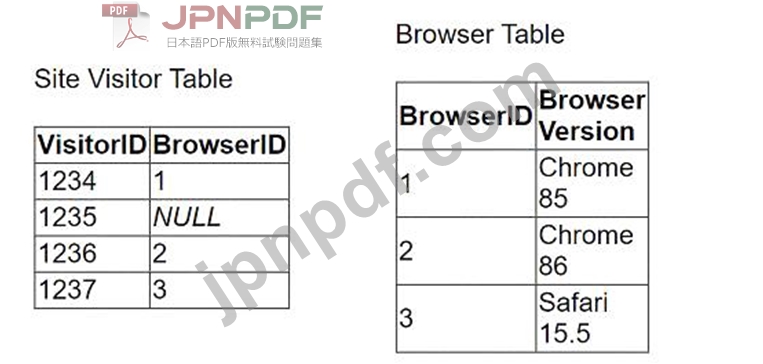 The data is stored in the format shown below in the related table, with a NULL BrowserID stored in the Site Visitor Table if an unknown browser version accesses their website.