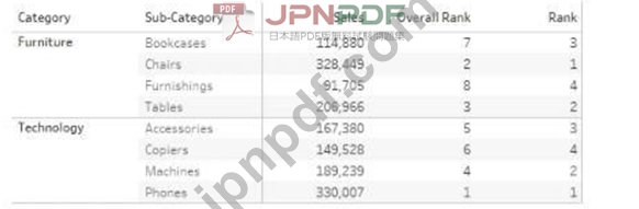 Overall Rank and Rank are calculated fields that use the RANK function.