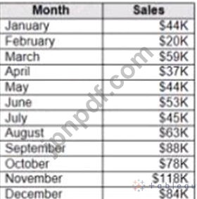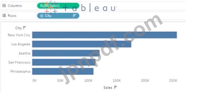 ワークシートでデータセットを使用する場合、次の表に示すように、Salesを自動的に表示する必要があります。