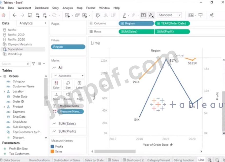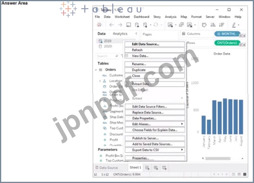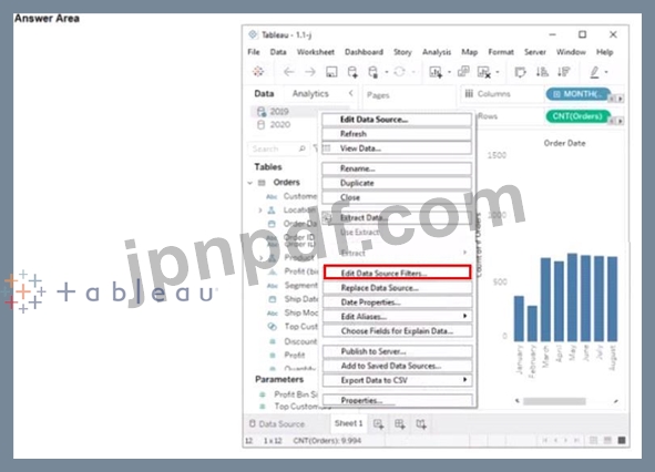データを再ロードせずに 2020 年からの注文を表示するようにワークシートを構成する必要があります。