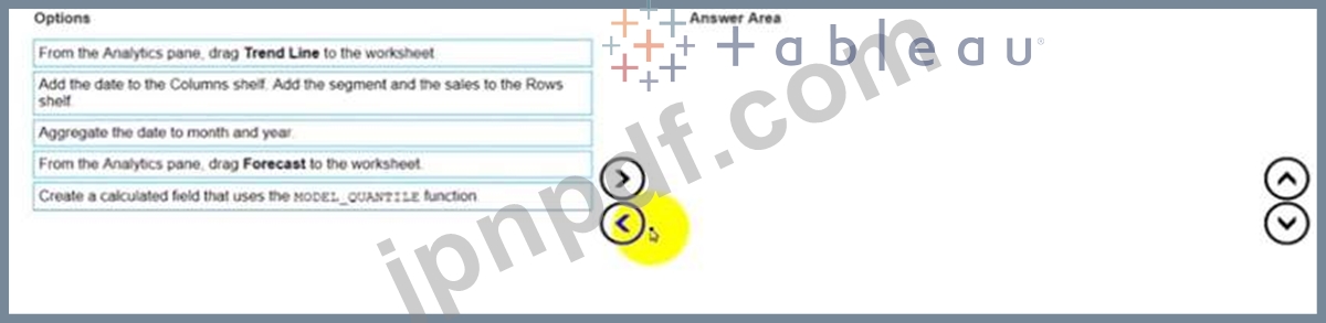 2017 年から現在までの事業セグメント別の毎日の売上高を含むデータセットがあるとします。 毎月の過去の傾向を使用して、将来のセグメント別の売上高を予測したいと考えています。 どの 3 つのアクションを順番に実行する必要がありますか?