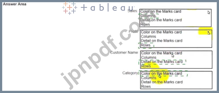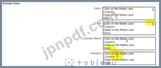 「カテゴリー」、「利益状況」、「顧客名」という4つのフィールドを持つデータセットがあります。次のビジュアライゼーションを作成する必要があります。