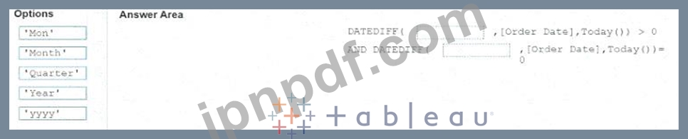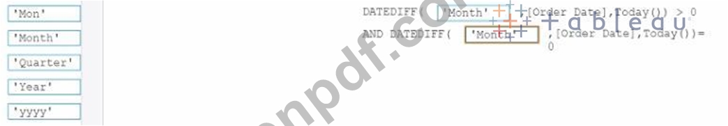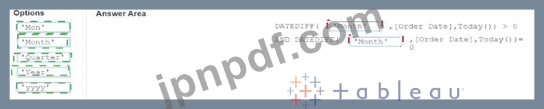 「現在の月を除外」の数式をどのように完成させる必要がありますか? (適切なオプションを回答領域にドラッグし、正しい場所にドロップします。)