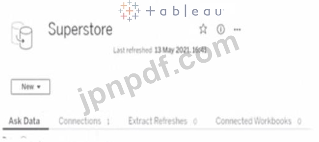 抽出データを使用したダッシュボードをパブリッシュします。抽出データは毎週月曜日の10:00に更新されます。