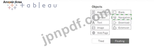 ユーザーがクリックしてワークブック内の別のダッシュボードに切り替えることができるオブジェクトをダッシュボードに追加します。