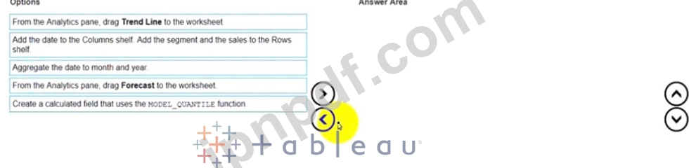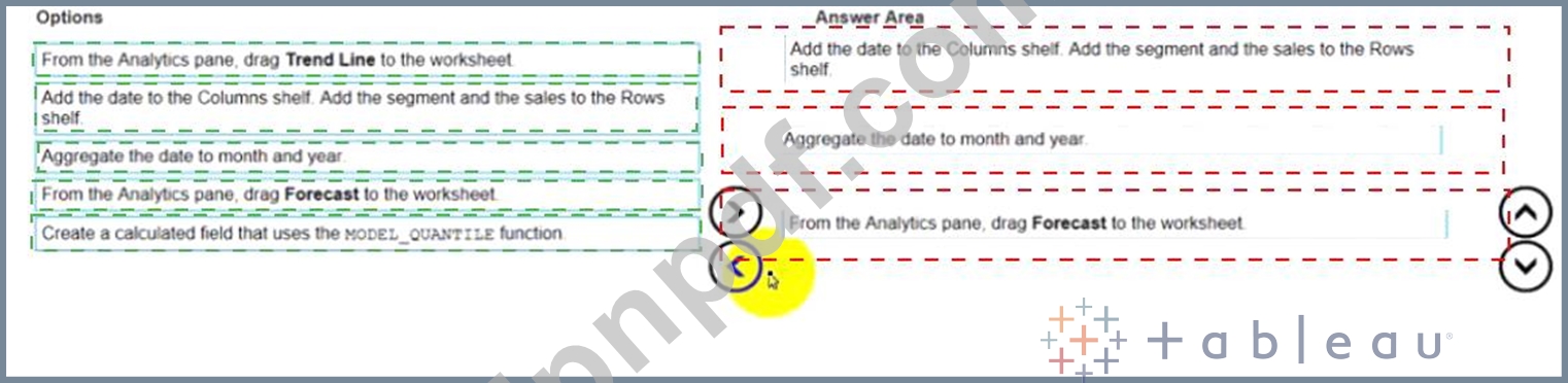2017 年から現在までの事業セグメント別の毎日の売上を含むデータセットがあります。月ごとの履歴傾向を使用して、将来のセグメント別の売上を予測したいと考えています。どの 3 つのアクションを順番に実行する必要がありますか?
