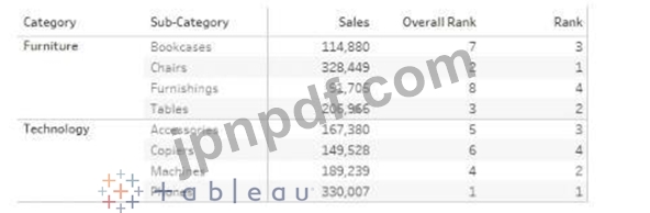 全体順位と順位は、RANK 関数を使用する計算フィールドです。